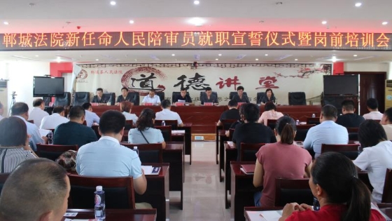 8月14日上午,郸城县新选任的150名人民陪审员在县人民法院宣誓就职并接受岗前培训。县人大常委会副主任王彪宣读人民陪审员任命文件,并为新任命的人民陪审员颁发任命证书。