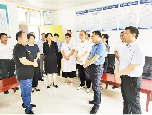 本报讯 (记者 徐松 通讯员 刘清俊 刘志刚 文/图) 8月13日,省卫健委体改处处长王耀平一行到郸城县调研紧密型县域医共体建设工作,并主持召开座谈会。市卫健委主任金玉贞,郸城县副县长肖炜、县卫健委主任付登霄及县各医疗健康服务集团负责人参加调研(如图)。