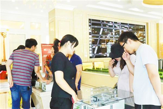 本报讯 近日,位于周口市八一大道与莲花大道交叉口的汇林·绿洲营销中心,前来看房的市民络绎不绝。营销中心摆放的户型模型前,几名置业顾问正在给客户讲解该项目户型设计亮点,客户听着讲解,不时频频点头表示赞许。