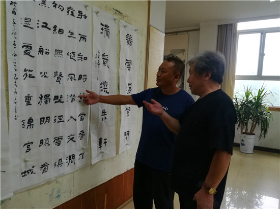 8月21日下午,著名书法家王明周莅临周口报业传媒集团书画院参观指导,并挥毫泼墨,留下珍贵墨宝。