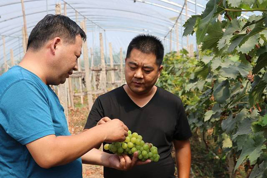 “2016年我们财政局出资13万元,帮村民建了这个15亩的葡萄园,由30户贫困户做股东,孙东献懂葡萄种植技术由孙东献来管理,每年带动近十户贫困户来葡萄园打工,每户净收入4000多元,加上出售葡萄的分红,每户净收入提高到近5000元。并且这是个可持续发展的项目。”驻村书记侯俊昌介绍说。