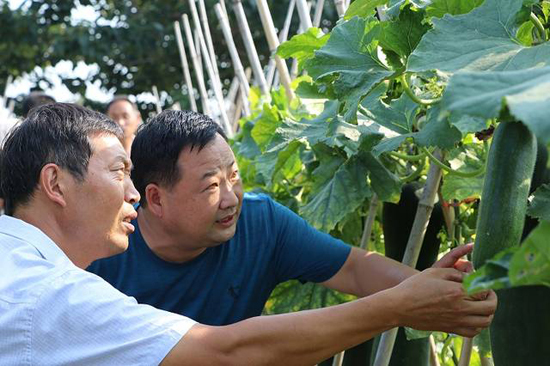 炎炎夏日,大棚下的侯俊昌汗水再次湿透,他抚摸着一串串紫红色的葡萄说,这都是改变贫穷的“紫珍珠”啊,只要我们班子上下齐心协力,小小的葡萄也能帮我们“拔掉穷根。”不仅仅是葡萄产业,村里的妇联主任徐桂兰也主动带头创业,承包了80亩的田地,种起了优质冬瓜,亩产上万斤,通过驻村帮扶,提供产销信息,远销到省内外多地。秋季种小麦、夏季种冬瓜的模式,亩产收益均在4000元以上。她平时鼓励村里贫困户到冬瓜地打工,每年带动近20户贫困户,每户增加收益近5000元。”侯俊昌告诉我们,“产业扶贫,造血扶贫在位口村已经深深扎根,同时也吸引了很多在外务工的有识青年返乡创业,有的做起了尾毛生意、有的做起了毛刷生意。现在全村兴起人人讲创业,户户拼经济的良好氛围。”