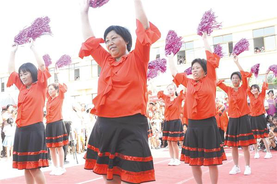 8月25日下午,市城乡一体化示范区许湾乡彭楼行政村文化广场,舞姿婀娜,鼓声雷鸣,笑语盈盈,该村千名农民以广场舞大赛的形式,喜迎新中国70华诞和即将到来的中国农民丰收节。记者 梁照曾 摄