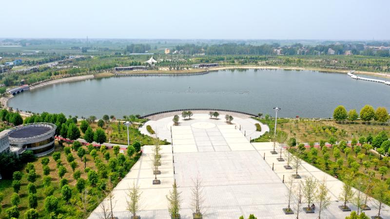 换个角度“瞰”郸城:千亩人民公园层林叠翠、绿意盎然,湖面如镜、倒映蓝天,亭台长廊、曲径通幽,布局精妙、独具匠心。
