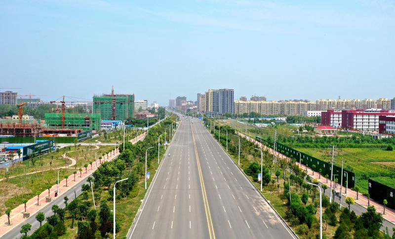 城市横向主干道新华路,华灯矗立、车流如织,郁郁葱葱、生态廊道,游园点缀、多姿多彩,商贾云集、坐拥繁华。