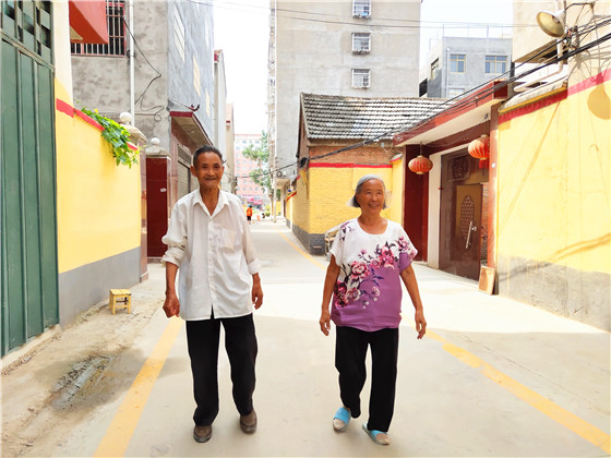 “我88(岁)了、她81(岁)了,四代同堂,在这住一辈子了。现在是最漂亮、最干净的时候了。俺两口都是监督员,感谢党哩政策好呀。”在夏庄社区居住的建筑公司退休工人张守振和老伴王秀荣满心欢喜地感党恩、乐享幸福生活。