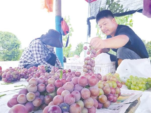 8月30日上午,扶沟县城郊乡马村罗会刚夫妇正在整理刚刚采摘的葡萄。几年前,罗会刚夫妇从陕西省宝鸡市回到家乡创办诚信家庭农场,流转土地发展葡萄种植。如今,他们二人已流转土地20多亩,带动周边群众发展葡萄种植,成为当地返乡创业中的佼佼者。记者 刘俊涛 摄