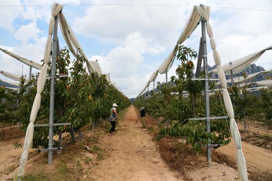 9月3日,工作人员在五莲山—白鹭湾田园综合体园区内的丰沃现代农业示范区内管理果树。