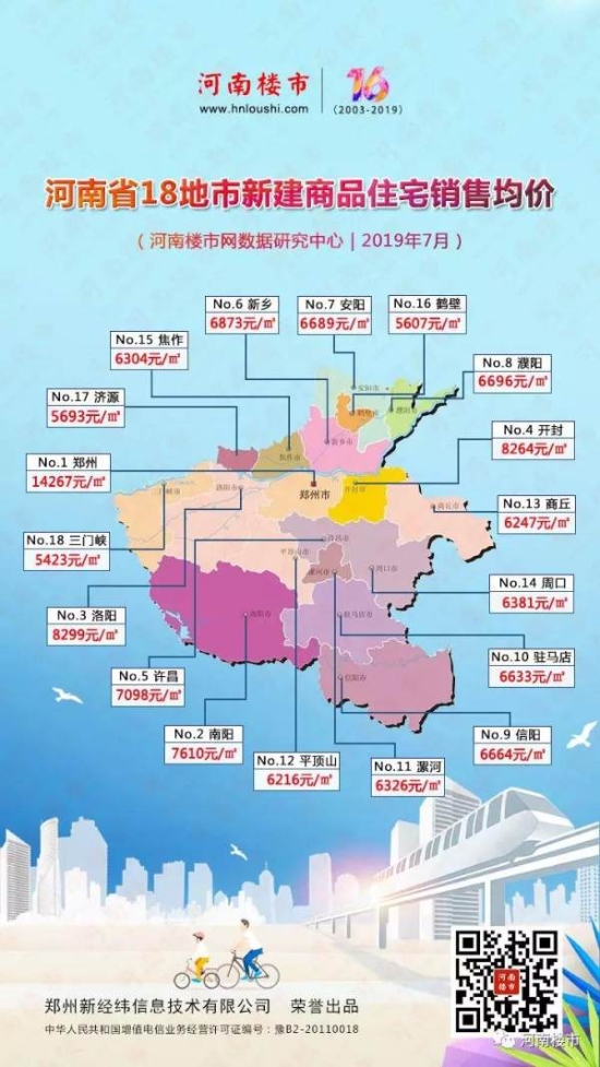 2018年1-7月份,河南省商品房销售均价约为6441元/㎡,比1-6月份(6409元/㎡)上涨32元/㎡,其中商品住宅销售均价约为6315元/㎡,比1-6月份(6281元/㎡)上涨34元元/㎡。