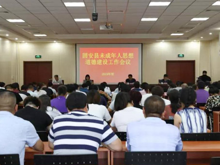 按照省、市工作部署,为进一步推进河北省固安县未成年人思想道德建设工作深入开展,7月24日,固安县创城办组织召开了2019年未成年人思想道德建设工作会议。固安县政府副县长牛海建,固安县妇联主席、固安县儿童友好型城市创建办主任、固安县创城办未成年人工作组组长张艳玲,固安县委宣传部副部长、固安县文明办主任韩宝青,固安县教育和体育局局长张志勇出席会议。固安县直未成年人思想道德建设工作责任单位主管负责同志,县直各中小学校,各乡镇中心校、中学主管负责同志,各乡村学校少年宫项目学校主管负责同志,各社区、场馆具体负责同志参加会议。