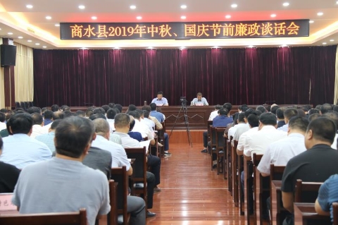 9月11日下午,商水县召开党员领导干部2019年中秋、国庆节前廉政谈话会。会议的主要任务是深入贯彻落实习近平总书记关于纠治“四风”问题的重要指示批示精神,巩固落实中央八项规定精神,防止“四风”问题反弹回潮,进一步在全县营造风清气正、清正廉洁的节日氛围。