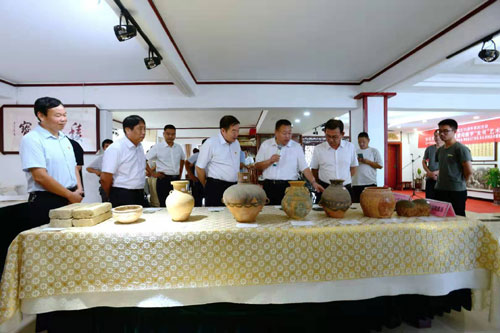 据了解,此次展览共展出闫振宇“女书”作品56幅、创作文物藏品186件,包括陶瓷、瓷器、铜器、玉器、化石、古铜钱、地契、文献资料等,涵盖了从远古新石器文明到近代红色文化展示。此次展览充分体现了该县打造“文化郸城、文化自信、不忘初心、牢记使命”的文化精神。
