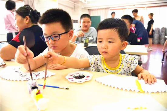 水印画、画扇面、穿扇衣……7月23日,北京市怀柔区泉河街道新贤家园社区开展“DIY手工水印折扇,喜迎祖国70华诞”主题活动,40余名青少年共同学习体验水印折扇的文化和乐趣。