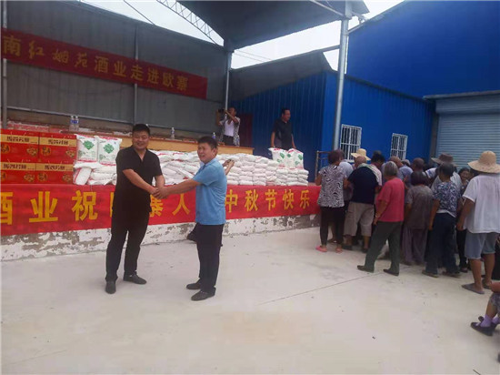 中秋节前夕,殴寨行政村乡贤会长王金成率领爱心企业红姻苑酒业公司爱心人士,将一卡车面粉和月饼摆放在村广场舞台上,让村里70岁以上老人免费领取。老人们被乡贤和爱心企业人士的真情所打动,纷纷赞不绝口。