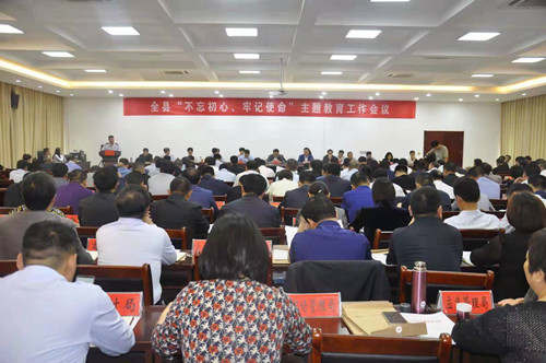 王国玺强调,开展“不忘初心、牢记使命”主题教育,责任重大、使命光荣。全县上下一定要在市委的坚强领导下,在市委指导组的精心指导下,以高度的政治责任感、良好的精神状态和扎实的工作作风,切实把这项工作抓好、抓实、抓出成效,确保取得人民满意的效果,以优异成绩向中华人民共和国成立70周年献礼!