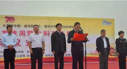 9月16日上午,2019年淮阳县网络安全宣传暨社科普及周启动仪式在羲皇文化广场举行。启动仪式上,县委书记马明超宣布2019年淮阳县网络安全宣传暨社科普及周启动。县委常委、宣传部长谢留定,县人大常委会副主任张凌君,县政协副主席李守运,县总工会主席丁永华,县公安局长李凤丽等出席活动。