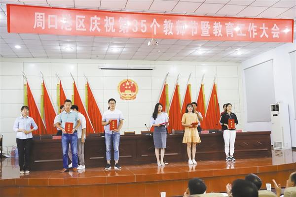 本报讯 (记者 宋风 文/图)9月10日,周口港区召开庆祝第35个教师节暨教育工作大会(上图),回顾总结上一学年港区教育工作,部署新学年工作任务,对全区优秀教育工作者和单位进行表彰。港区管委会主任程若光在会上对全区教育工作提出明确要求。港区党委委员张东立,党委委员、管委会副主任刘学庆,副调研员李素芹,公安分局局长何学民参加会议。
