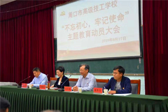 9月17日下午,周口市高级技工学校召开“不忘初心,牢记使命”主题教育动员会,学习贯彻习近平总书记在“不忘初心、牢记使命”主题教育工作会议上的重要讲话和省委、市委“不忘初心、牢记使命”主题教育工作会议的精神,并对学校开展主题教育进行部署。市委第十七巡回指导组到会指导。
