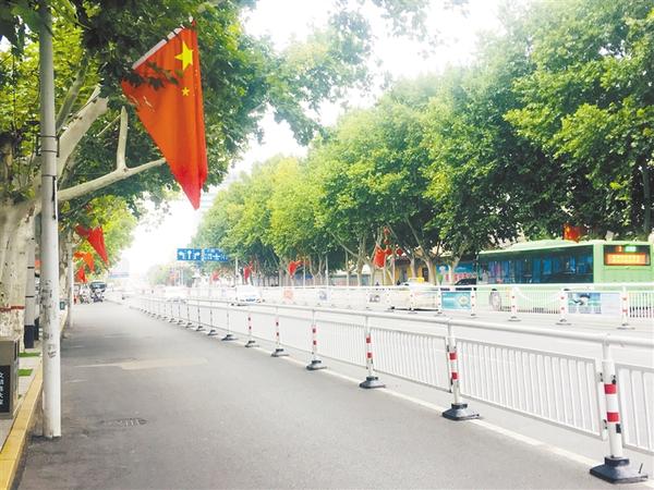昨日,我市中心城区七一路、八一大道等主干道两侧挂满了鲜艳的五星红旗,以此来迎接中华人民共和国成立70周年。记者 刘昂 摄