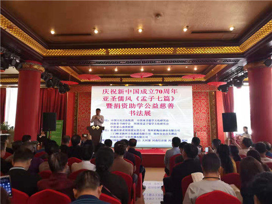 9月22日上午,西华籍书法家孟亚红庆祝新中国成立70周年亚圣儒风《孟子七篇》暨捐资助学公益慈善书法展在郑州皇宫大酒店举办,来自全国各地的书法爱好者齐聚一堂,以字会友,交流书法,向新中国成立70周年献礼。