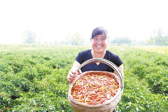 看着刚采摘的辣椒,王丽脸上露出灿烂的笑容