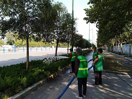 在国庆节即将到来之际,为打造整洁、文明、靓丽、和谐的城市环境,连日来,市城管局在中心城区组织开展了以“扮靓城市,为国庆增光添彩”为主题的活动,营造了良好的节日氛围。图为园林绿化工人在周口大道流沙河北段清洗绿化带。记者 李一 摄