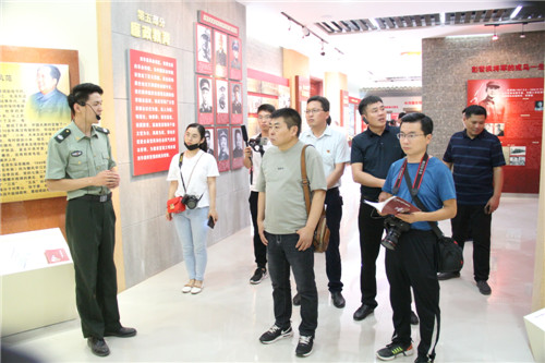 看展览、听讲解、看影像,采访团记者仔细浏览纪念馆内陈列的一张张珍贵照片、一份份批示文件、一件件战斗装备,不时地记录、拍照。