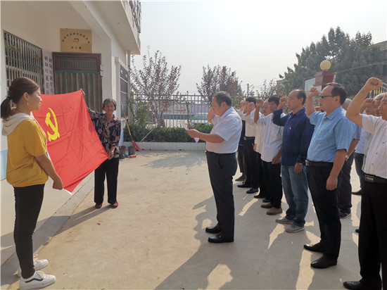 9月27日,扶贫日,郸城县为深入学习贯彻习近平总书记视察河南时的重要讲话精神,全力做好庆祝新中国成立70周年相关活动,组织县直机关单位以开展主题教育为契机,进一步抓紧抓好机关支部与农村(社区)基层支部结对共建“手拉手”活动,机关党员深入联系点开展“不忘初心跟党走,牢记使命见行动”主题党日活动。