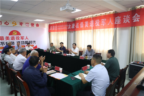 会上,大家一起观看了主题教育宣传片《初心,从未改变》。听取了县退役军人事务局党组书记、局长潘布道关于太康县退役军人事务工作情况汇报。接着,在县委常委、副县长韩维俊主持下,与会退役军人畅所欲言,追忆过去在军营服役时的难忘岁月,畅谈今天的幸福生活,为家乡翻天覆地的变化点赞。县委书记王国玺边听边记,不时与大家交流互动,现场气氛融洽。