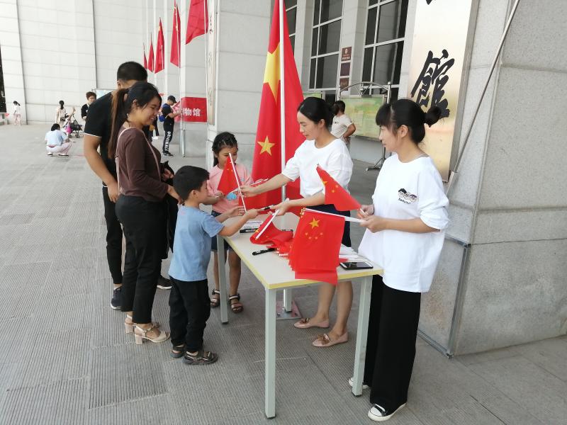 为庆祝中华人民共和国成立70周年,国庆节期间,市博物馆举办“不忘初心 致敬祖国——我与国旗共荣光”活动。