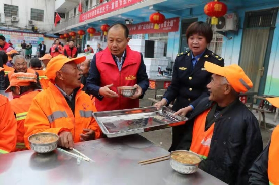 当日凌晨5时许,太康县爱心早餐点人头攒动,热闹非凡,一辆装满新鲜蔬菜的大货车停放在院中,20多名城管志愿者在太康县城管局局长张爱梅的带领下正从车上往下卸蔬菜。听说爱心企业要为环卫工捐赠蔬菜,太康县委常委、统战部长张新栋也放弃节日休息,天不明赶到太康爱心早餐点,加入到蔬菜装卸行列。“节日里,县领导也不忘过来看望我们环卫工,真让人感动啊。”看着张新栋、张爱梅等人忙前忙后卸蔬菜,脸上浸满了汗珠,环卫工张大爷等人动情地说,“社会上有这么多好人关心我们环卫工,我们再苦再累也值了!”