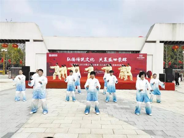 10月7日上午,由周口市太极拳协会主办的2019周口市太极拳八法五步团体交流赛在周口植物园门前广场举行,共有33支代表队463名太极拳选手参赛。图为比赛现场。记者 王凯 摄