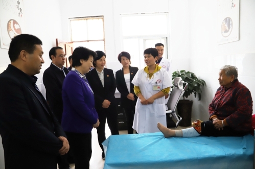 赵素萍先后深入郸城县中医院、人民医院、石槽镇卫生院及小曹楼村卫生室,对该县紧密型县域医共体建设实现县、乡、村医疗资源共享,基本实现分级诊疗,解决了群众看病难、看病贵的问题给予充分肯定。她说,“没有全民健康,就没有全面小康”,要切实提高基层医疗服务水平,当好群众健康守门人。