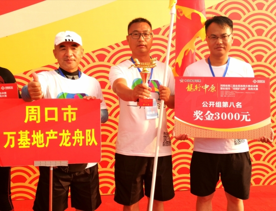 代表我市出征的“周口万基地产龙舟队”经过激烈角逐,取得了全省省辖市公开组200米直道赛第八名。