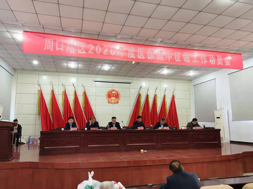 10月16日,周口港区召开2020年度医保集中征缴工作动员会,港区党委委员张东立出席会议并讲话。港区人社局、财政局等单位主要负责同志和李埠口乡乡村干部等100余人参加了会议。