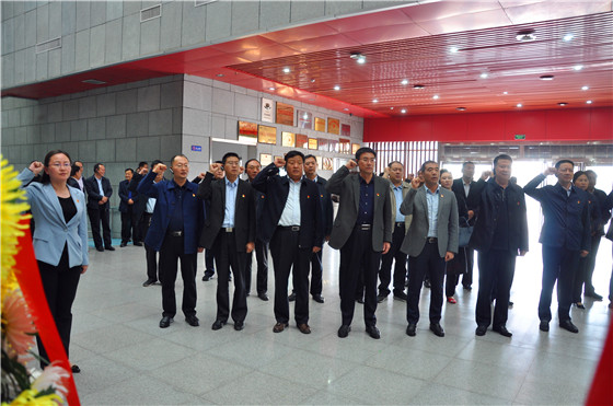田林、张峰、李德来、孙培忠等首先来到吉鸿昌铜像广场,瞻仰英雄英姿,追忆将军的浩然正气和爱国情怀。步入展 厅,县委常委、组织部长刘和辉带领参观人员重温入党誓词。
