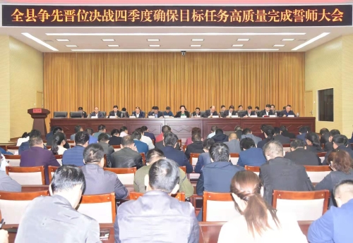 乘着周口市2019年第三季度项目观摩的东风,扶沟吹响了决战第四季度、奋力推动经济社会高质量发展的“冲锋号”。10月21日,扶沟县召开争先晋位决战四季度确保全县目标任务高质量完成誓师大会,深入贯彻习近平总书记在河南考察调研指示精神,动员全县上下进一步认清形势,坚定信心,鼓足干劲,加大力度,大干苦干,决战决胜,全力以赴做好第四季度工作,确保全年目标任务高质量完成。张颖波、詹凯、姜永来、张建中等县四个班子领导出席会议。县委副书记、政法委书记詹凯主持会议。