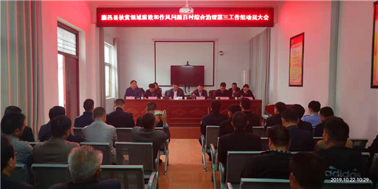 韩林强调,脱贫攻坚是全党、全国的大事,是党的十九大作出的重大决策部署,是决胜全面建成小康社会,全面建设社会主义现代化国家的重大历史任务,是新时代“三农”工作的总抓手。要通过扶贫领域腐败和作风问题百村治理,持续净化脱贫攻坚环境,提升脱贫攻坚整体士气,要坚决查处村党员干部违法违纪问题,严厉打击黑恶势力。工作组要对阻碍脱贫攻坚,侵害群众利益、危害社会治安、扰乱基层秩序、损害发展环境、破坏基层选举、横行乡里、为非作歹、欺辱百姓、败坏社会风气的村霸和宗族黑恶势力依法开展整治。以强有力的阵势坚决打击害群之马,坚决刹住歪风邪气,坚决铲除地痞村霸,增强人民群众安全感,巩固党的执政基础。