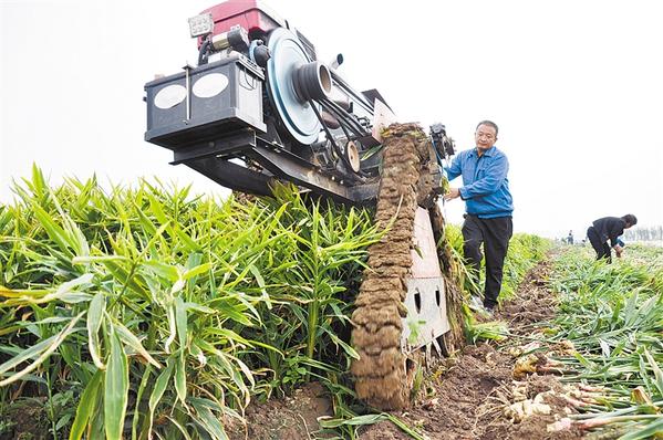 昨日,商水县谭庄镇益民蔬菜种植合作社社员在采收生姜。