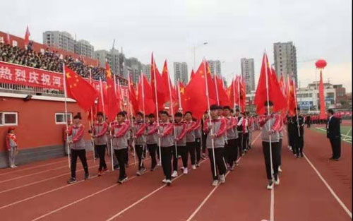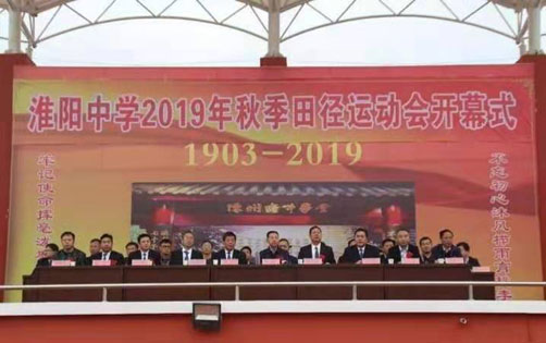 收获的十月,金风送爽,10月26号,淮阳中学秋季运动会在运动场隆重举行开幕式,副县长王汝凌出席开幕式。县教体局局长师建峰,陈州高级中学、县实验高中、西城中学、县文正小学等局直学校受邀参加开幕式。学校全体师生参加开幕式,共同见证了运动会场秋点“兵”的壮观场景。开幕式首先举行入场式,国旗、校旗、运动会会徽、班旗方阵、教练员方阵以及各年级运动员代表方阵,英姿飒爽,意气风发,伴着激昂的旋律,踏着节拍依次走过主席台,接受领导的检阅。
