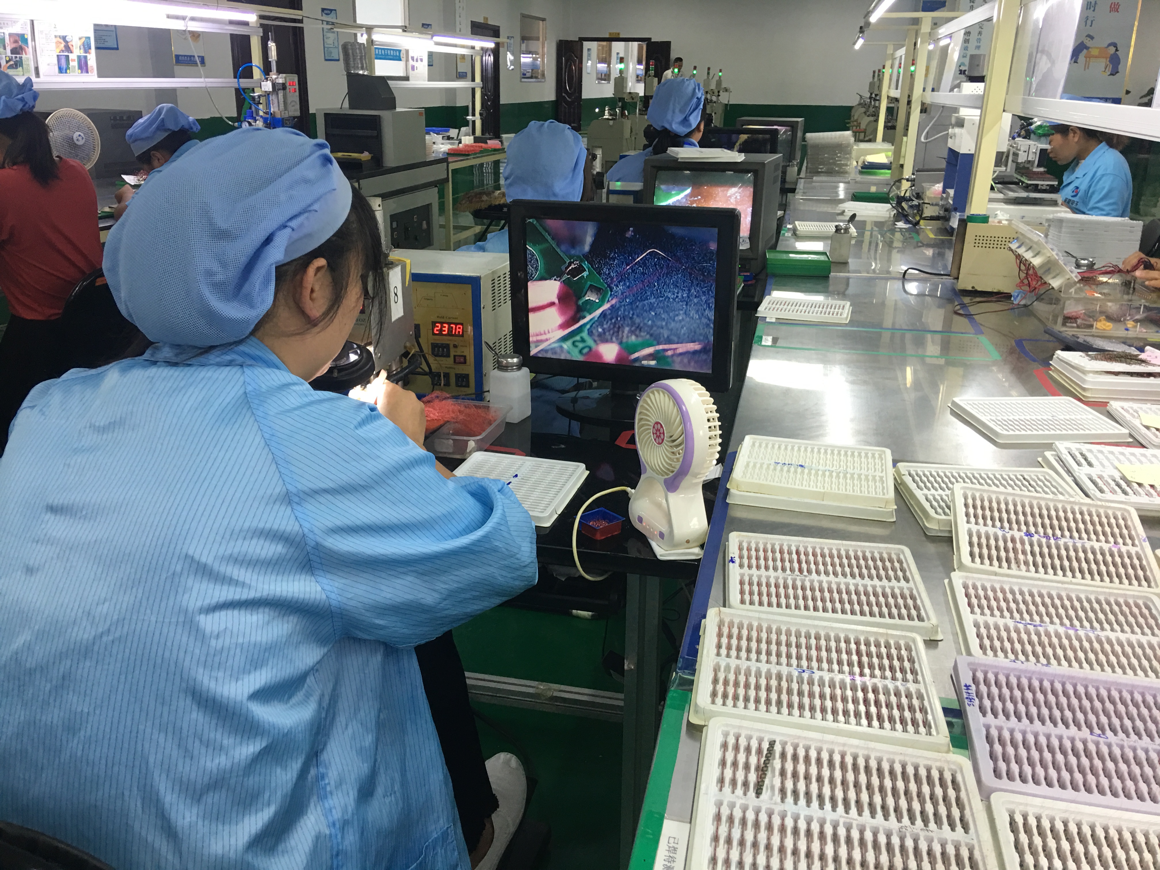 周口经济开发区聚焦主业主责,立足主导产业,不断推进企业转型升级和技术改造,催生了一大批高新技术企业。图为一家高科技电子企业员工通过显微操作系统组装电子元件。