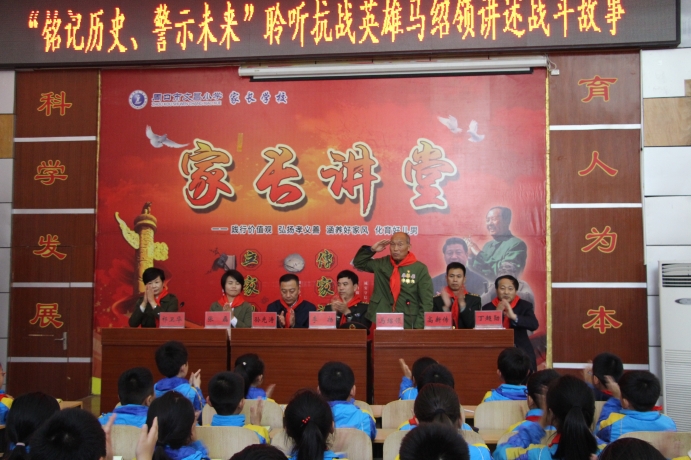 近日,周口市文昌小学少年军校邀请抗战英雄马绍领为学生们讲述革命故事。