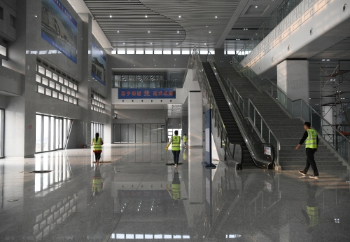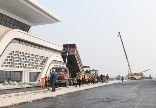 11月8日下午,记者再次来到郑阜高铁周口东站,看到一片热火朝天的施工景象。伴随着高铁即将开通,工人紧张施工,施工进度一天一个样,确保如期交付使用。图一落客平台进入铺油阶段。图二站前广场紧张施工中。图三候车大厅进入精细化保洁。