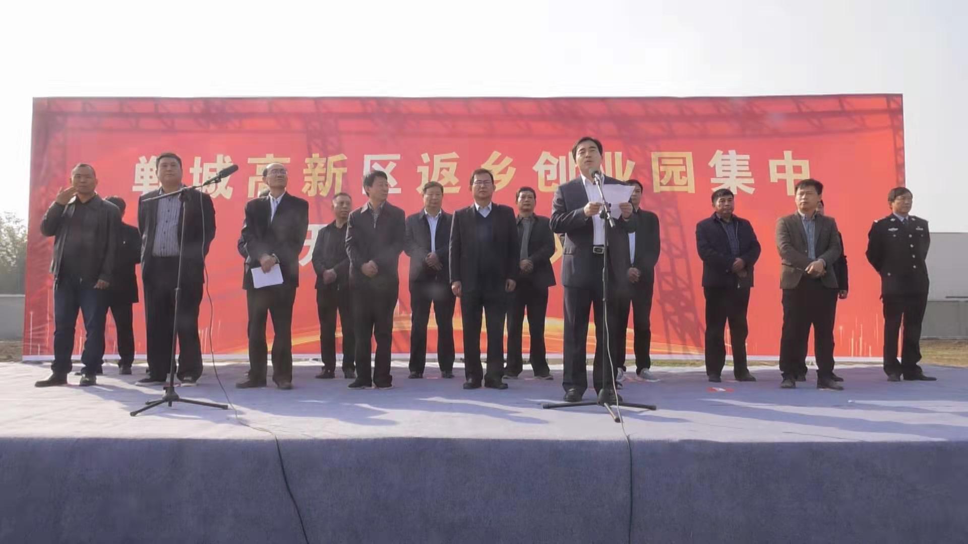 王智华指出,返乡创业园的建设是深入贯彻落实县委、县政府实施开放招商、加快实现工业强县的重大举措,也是推动返乡创业的重大成果。各项目单位要加大投入、加强管理、加快进度,高标准建设、高效率推进,确保早竣工、早投产、早见效。全县各级各部门要牢固树立大局意识、服务意识,严格按照“三个一”改革工作要求,转变作风,提升效能,全力提供优质服务,切实提升营商环境,保障项目建设顺利推进,为促进全县经济社会高质量发展作出新的贡献。王智华宣布了入驻郸城县返乡创业园三个项目正式开工。
