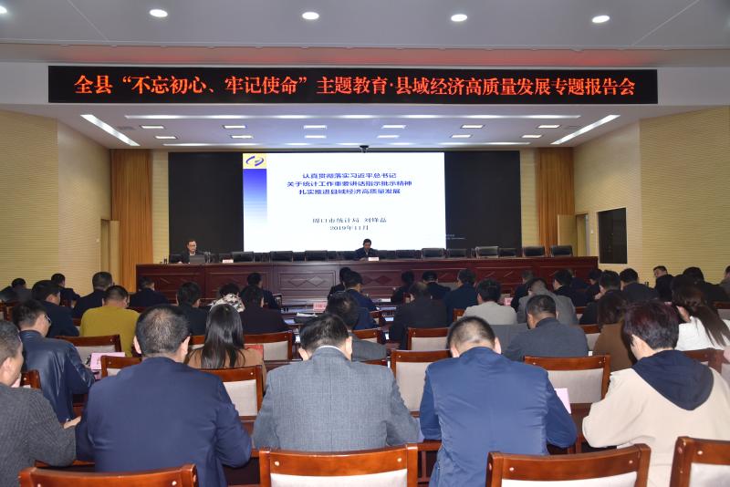 11月14日,扶沟县召开“不忘初心、牢记使命”主题教育·县域经济高质量发展专题报告会,特邀市统计局党组成员、总统计师刘锋磊作专题辅导。张颖波、姜永来、张建中、段然、王霄灵、赵红亮、闫忠玉、尚守永、曹来凌等县领导聆听报告。县委常委、常委副县长王霄灵主持会议。