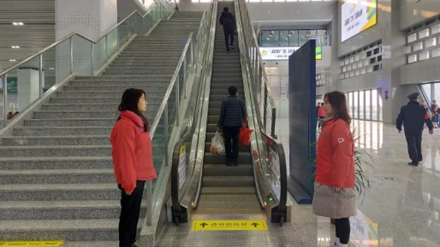12月1日早上6:30,当大多数人还沉浸在梦乡里,志愿者柯晓艳和同学已经站在周口东站的售票厅,为即将乘坐高铁出行的乘客做指引。