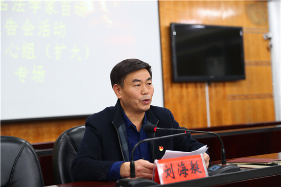 11月26日晚,太康县在县委综合楼召开县委理论学习中心组(扩大)“不忘初心、牢记使命”主题教育夜校法治宣讲活动专场报告会。河南工业大学法学院教授、博士生导师谭波作《依法治县与法治太康建设》专题讲座。县委副书记、县委政法委书记刘海艇主持会议。县副处级以上领导干部,县直各单位党政正职,县委各部委办副职,各乡镇乡镇长,人大、政协机关各委室主任、副主任共100余人参加会议。