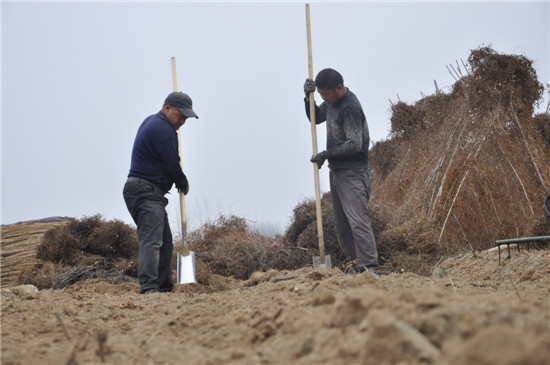 他从最早用尖头钢锹开始,逐渐改为扁头钢锹,再改用目前的钢筒锹。耿金中说,挖山药是一个体力活,也是一项技术活,挖山药多少跟个人技术熟练程度有关,因为山药很脆,用力分寸、下锹角度及深浅不合适都易造成山药折断,影响品质。
