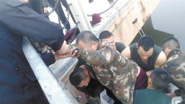 12月1日16时30分许,在进行长跑训练的武警周口支队执勤二大队鹿邑中队官兵忽然听到呼救声。随后,他们看见一些群众向附近的闫沟河边聚集。“不好,肯定是有群众落水了。”孙方坦说。随后,孙方坦便带领现场的鹿邑中队官兵冲了过去。由于当时气温较低,现场群众虽然多但无人下水施救。面对这一情况,该中队官兵自发手拉手结成一条“生命线”,将落水群众救起。