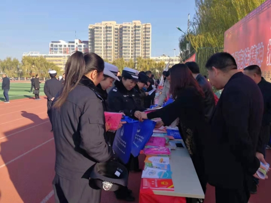 县委副书记、政法委书记张峰,县人大主任李德来,县政协主席孙培忠,县委常委、副县长杨飞等在县依法治县委员会办公室副主任、县司法局局长王洪辉陪同下到到各个单位宣传咨询台前,与宣传人员亲切交谈,了解各单位的宣传情况。